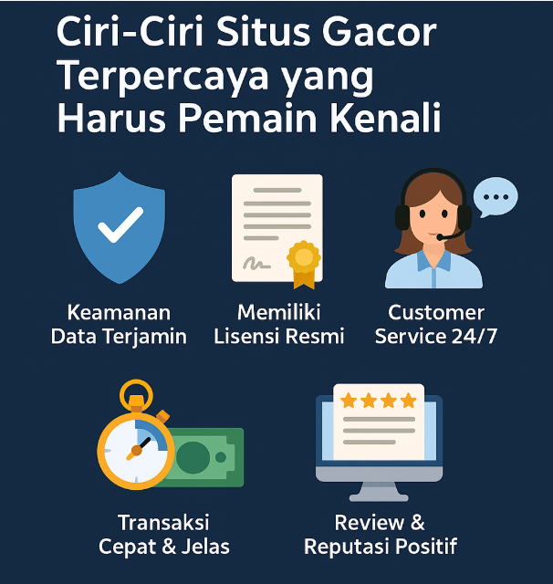 Memilih situs gacor terpercaya adalah langkah paling penting sebelum bermain. Ciri-ciri seperti lisensi resmi, transparansi, keamanan data, transaksi jelas, hingga review positif adalah indikator utama yang wajib diperhatikan.